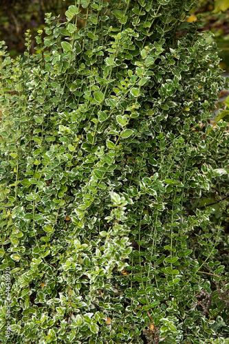 Euonymus fortunei emerald gaiety green and white garden plant leaves close up