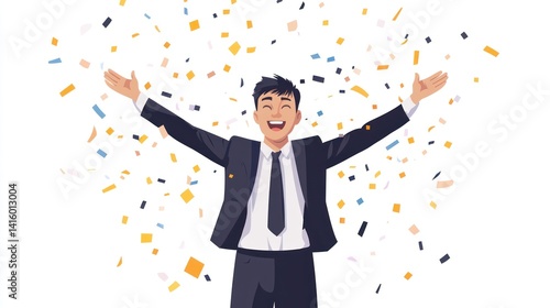 celebration, confetti, success, achievement, businessman, jubilation, triumph, career, happy, winning, rejoice, accomplishment, appreciation, goal, reward, encouragement, incentive, victory, celebratory, overjoyed, greeting, corporate, professional, determination, positive, emotion, satisfaction, opportunity, motivation, aspiration, progress, growth, optimism, prosperity, advancement, leadership, recognition, enjoyment, excitement, delight, attainment, breakthrough, elation
