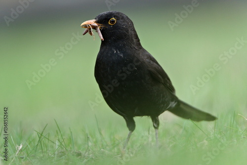 feather, worm, forest, beak, fauna, songbird, birding, bird, kos, avian, birding, spring, beautiful, common, grass, bird, blackbird, feeding, funny, wildlife, green, springtime, worm, nature, european, black, ornithology, perched, eating, portrait, eye, foliage, closeup, closeup, background, animal, garden, wild, male, zoology