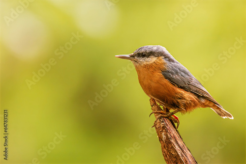 Eurasian nuthatch, (Sitta europaea) singing on the trunk of a tree