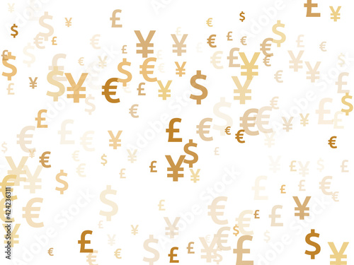 Euro dollar pound yen gold signs scatter currency vector background. Income pattern. Currency