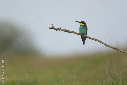European Bee-Eater - Merops Apiaster on a branch , exotic colorful migratory bird
