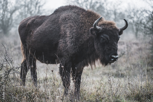 animal, european, nature, forest, mammal, wildlife, power, bison, wild, brown, bull, park, head, europa, endangered, horned, outdoors, green, grass, wind, young, walk, wilderness, snow, white, fauna, wood, cold