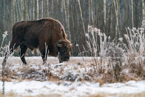 European bison (Bison bonasus) in winter Bialowieza forest, Poland
