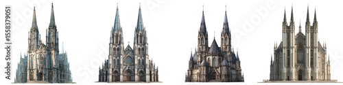 European Gothic Cathedral Collection: Majestic Architecture on White