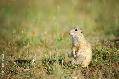 European ground squirrel sitting on green grass