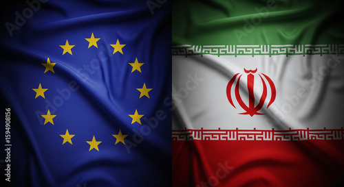 dramatic, european, union, iran, flag, waving, fabric, texture, realistic, clothes, banner, subtile, light, crease, fold, side, canvas, full, frame, background, cleaving, political, diplomacy, international, relation, design, detailed, textile, soft, shadow, motion, breeze, scene, divided, elegant, ratio, peace, contrast, balance, hanging, representation, image