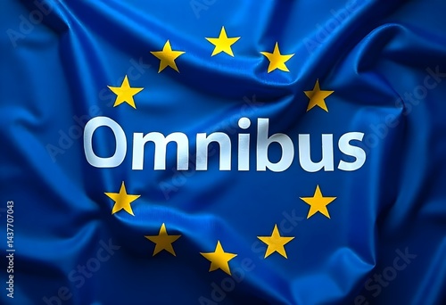 European Union Flag with Omnibus Regulations Text, Sustainable Reporting