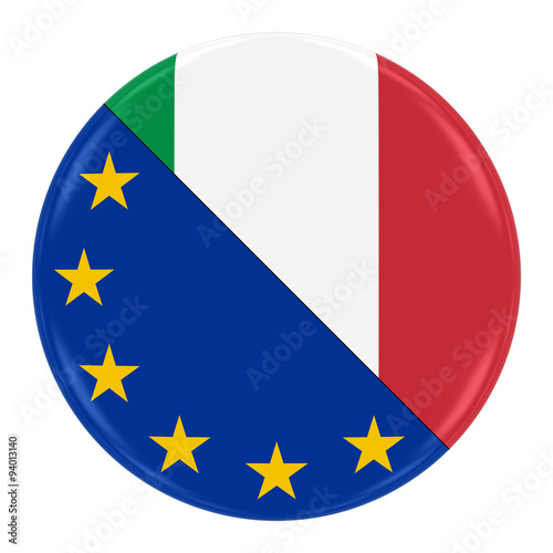 European/Italian Relations Concept Image - Badge with Split Flags of the European Union and Italy