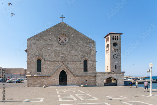 Evangelismos Church of the Annunciation in Rhodes next to Mandraki Harbor. The church is a magnificent example of Gothic architecture.