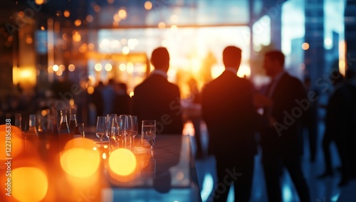 Evening Corporate Event: Blurry Silhouettes and Golden Lights