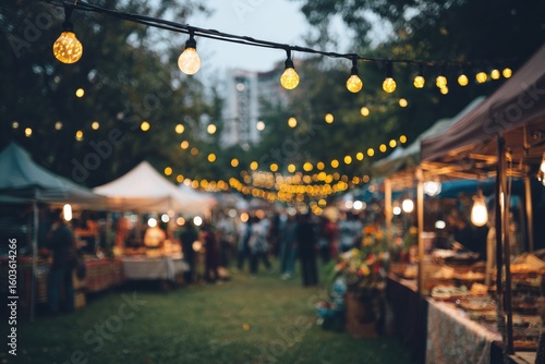 evening, market, festive, light, string, blurred, people, tent, food, drink, gathering, celebration, warm, ambience, festival, night, grass, tree, city, building, cosy, relaxed, social, community, entertainment, seller, table, product, display, event, illuminated, glowing, warmth, buzzing, activity, casual attire, charming, relaxation, fun, nightlife, crowd, soft, sharpened, bokeh, twilight