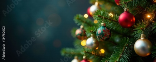 evergreen tree with ornaments and fairy lights, Tree, Fairy Lights, Greenery