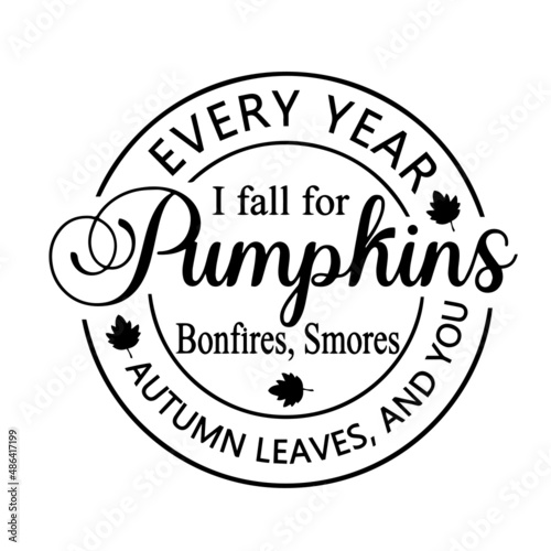 every year i fall for pumpkins bonfires smores autumn leaves and you inspirational quotes, motivational positive quotes, silhouette arts lettering design