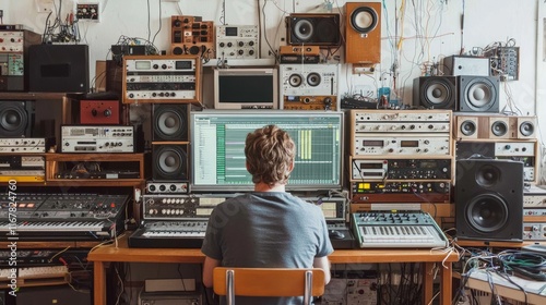 sound, engineer, editing, audio, track, vintage, equipment, modern, evolution, engineering, mixing, console, studio, earphones, software, production, music, technology, multimedia, digital, workstation, recording, design, advancement, professional, tool, industry, creative, workspace, progression, revolution, analog, quality, technique