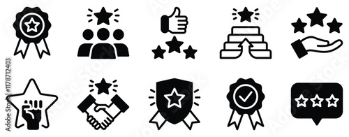 Excellence Icon Set Distinguished Solid Style Collection for Quality and Achievement