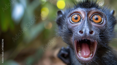monkey, black, excited, closeup, facial expression, wildlife, wild animal, nature, primate, shock, surprise, emotion, funny, portrait, fauna, conservation, forest, jungle