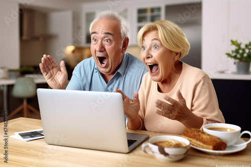 astonished, amazed, senior, excited, triumph, euphoric, people, family, staring, man, money, screaming, surprised, computer, laptop, home, couple, happy, success, celebration, auction, cyberspace, web, news, emotional, wife, online, woman, husband, elderly, positive, luck, retired, achievement, delighted, enjoy, looking, mature, pensioner, satisfied, desk, shout, sitting, smiling, together, victory, watching, winner