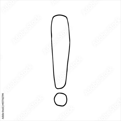 Exclamation mark. Vector illustration. Cartoon. Hand-drawn in doodle style. Isolated on a white background. Coloring pages for children and adults.
