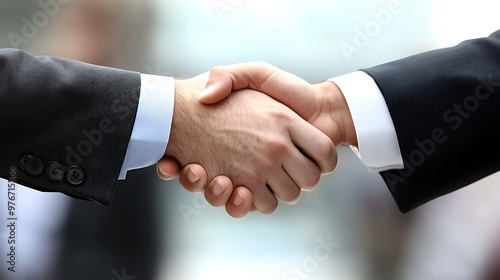 Executives engaged in a handshake, illustrating partnership in a business setting, with clear area for copy.