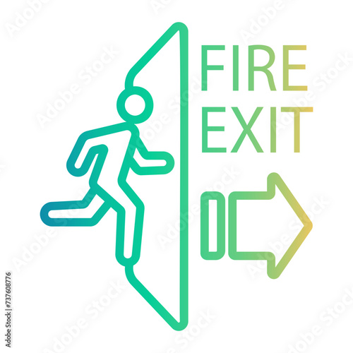 exit, fire exit, evacuation, emergency, leaves, escape, door, icon, gradient, line, graphic, illustration