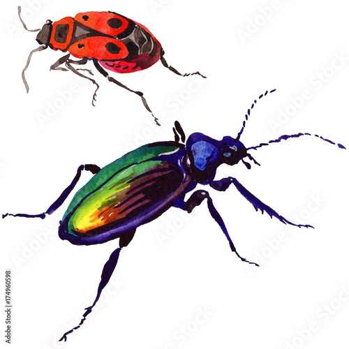 beetle, nature, illustration, bug, fly, animal, insect, summer, mosquito, wildlife, wild, ant, wing, small, spring, biology, watercolor, watercolor, drawing, background, textile, colourful, fashion, hand, drawn