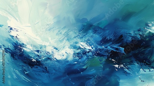 Expansive abstract digital painting showcasing flow state through dynamic brushstrokes in blue and green tones