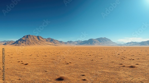 desert, landscape, sky, blue, sun, mountain, sand, dune, horizon, huge, expanse, arid, barren, dry, hot, sunlit, heat, terrain, wilderness, nature, scenery, panorama, view, background, texture, environment, ecology, geology, geography, travel, adventure, exploration, remote, wild, desolate, lonely, calm, peaceful, stillness, silence, solitude, majestic, scenic, beautiful, vibrant, bright, clear, day