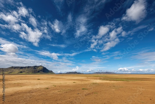 landscape, sky, cloud, blue, white, flat, land, plain, desert, mountain, range, horizon, huge, expanse, open, space, scenery, nature, outdoors, panorama, view, summer, day, sunlight, bright, clear, scenic, picturesque, tranquil, serene, calm, peaceful, majestic, beauty, wonder, travel, adventure, exploration, wilderness, remote, untouched, barren, arid, dry, earth, ground
