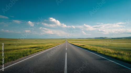 Expansive road journey serene landscape photography open fields wide angle adventure exploration
