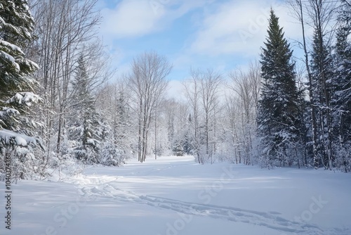Expansive view of a snowy woodland area, perfect for winter exploration