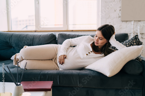 woman, pregnant, expect, belly, rest, maternal, style, calm, couch, lying, female, pregnancy, await, antenatal, motherhood, anticipate, mother, parenthood, mother, unborn, relax, chill, peaceful, well-being, lounge, recreation, leisure, weekend, day off, lazy, satisfied, positive, smile, love, partiality, affection, lady, feminine, casual attire, sweater, sofa, pillow, comfort, cosy, living room, modern, lifestyle, full body