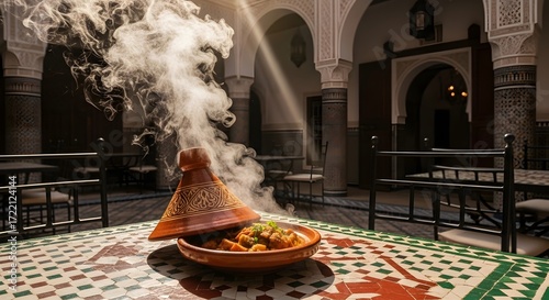 moroccan, cookery, tagine, food, travel, culture, riad, courtyard, dish, meal, traditional, delicious, culinary, adventure, tour tourism, eatery, epicure, dining, authentic, exotic, aroma, steam, hot, fresh, lunch, dinner, spice, herb, favor, taste, vacation, hospitality, architecture, design, interior, pattern, tile, sunlight, shadow, north africa, travel destination, food photography