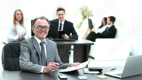 experienced businessman working with financial documents office