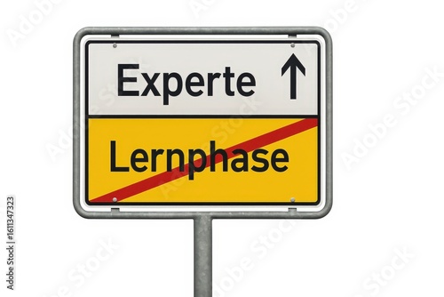 expert, learning, mastery, progression, advancement, transition, signpost, arrow, expertise, development, skill, achievement, career, success, professional, leadership, guidance, direction, decision, choice, growth, cognition, concept, metaphor, signage, roadsign, minimalism, german, german