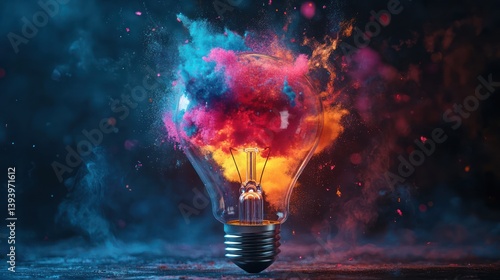 light bulb, idea, creativity, explosion, colours, colourful, marketing, innovation, inspiration, abstract, energy, power, bright, design, technology, concept, background, art, studio, image, bulb, electric, spark, thinks, vision, future, growth, success, development, progress, imagination, discovery, solution, strategy, visionary, dynamic, creative, brilliant, light, paint, powder, smoke, modern