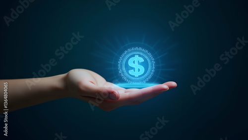Explore Tax-Free Investment Options: A Hand Presenting a Holographic Device Showcasing Financial Growth and Security Against an Empty Space Background