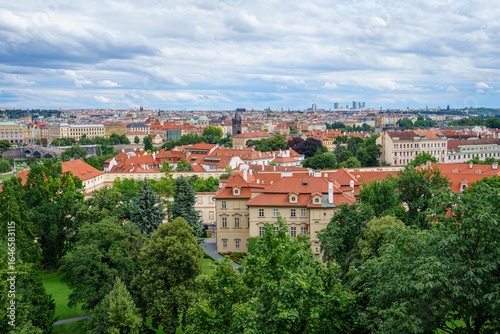 prague, czechia, city landscape, architecture, roof, greenery, panorama, travel, tour tourism, europa, city, building, landscape, urban, view, skyline, destination, landmark, historical, culture, vacation, holiday, scenery, capital, town, district, quarter, tree, garden, park, cloud, sky, horizon, estate, residence