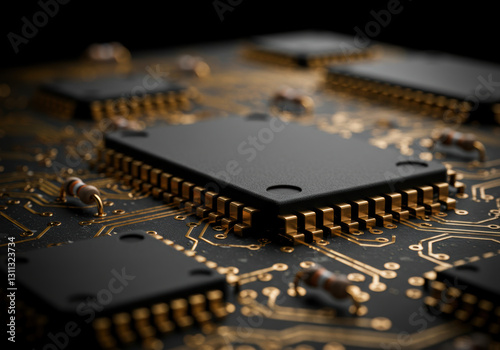 circuit board, motherboard, microchip, computer, electronic, technology, hardware, integrated circuit, central processing unit, component, digital, engineering, electrical, gold, black, system, pcb, connection, pathway, semiconductor, tech, device, closeup, macro, electronic, modern, background, future, innovation, network, high technology, computing, industry, computer science, electricity, equipment, information technology, microelectronics, connection, detail, surface, design, electrical engineering, chips, resistor