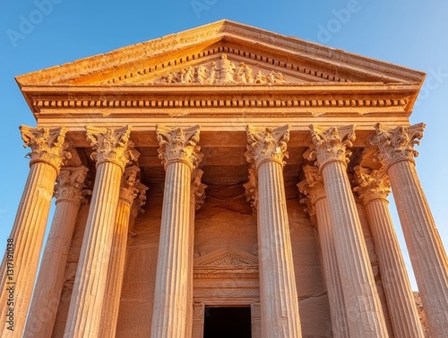 Exploring Ancient Sandstone Temple Facade Historical Site Architecture Warm Sunset Ground Level Cultural Heritage