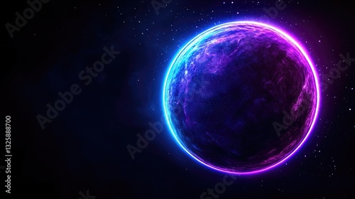 Exploring cosmic wonders neon planet space digital art dark environment futuristic viewpoint