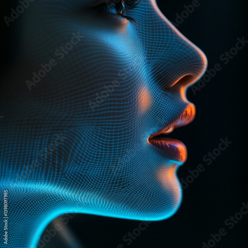 digital artwork, profile, female, futuristic, illumination, artistry, contour, expression, technology, visualisation, beauty, abstract, light, creativity, colouring, digital illustration, aesthetic, portrait, half face, neon, shadow, innovation, graphic, modern, sleek, design, face art, symmetry, stunning, character, contemporary, captivating