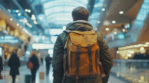 Exploring the airport traveler's journey modern terminal candid moment bright environment rear view adventure awaits