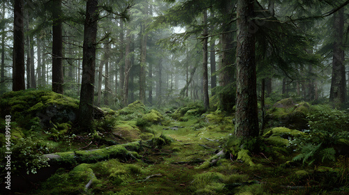 Exploring the Enchanting Tranquility of a Damp Mossy Forest: A Journey Into the Heart of Nature's Green Sanctuary