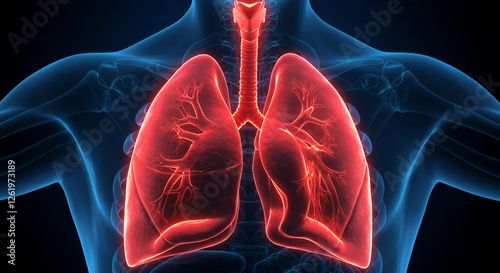 Exploring the intricate structure of human lungs illuminated in a vivid artistic representation