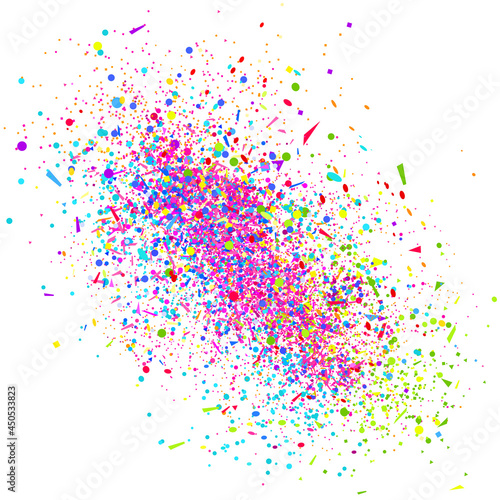 Explosion. Texture with colored geometric elements on white. Geometric background with confetti. Pattern for design. Print for banners, posters, flyers and textiles. Greeting cards
