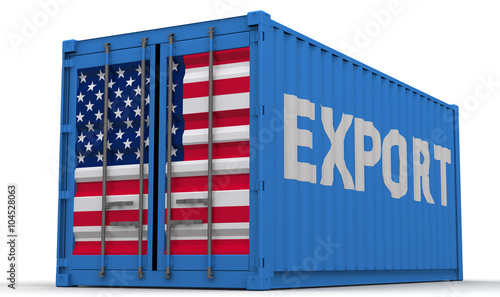 export, container, freight, cargo, us, america, us, flag, american, shipping, shipment, closed, word, blue, business, white background, no people, isolated, single object
