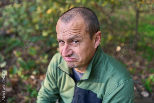 disappointed, bankruptcy, fail, unhappy, upset, acting, actor, expression, expressive, feeling, face, closeup, autumn, fall, mature, adult, casual attire, caucasian, cool, forest, green, guy, jacket, male, man, model, 1, outside, park, people, person, portrait, posing, single, to sit