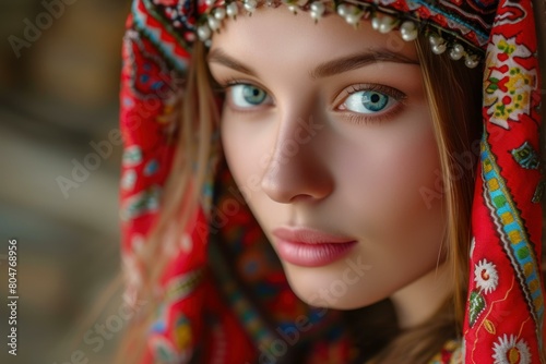 exquisite, beautiful, slavic, woman, attractive, lady, blue, eye, headscarf, female, girl, traditional, beauty, dress, culture, folk, tradition, floral, wear, feminine, gorgeous, eastern, european, gal, appealing, maiden, gaze, kerchief, ladylike, style, heritage, allure, attire, native, ethnic, flowered, blossom, grinning, womanly, charming, fashionable, folkloric, blooming, cheerful, clothing, historical, elegant