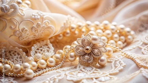 Exquisite Bridal Detail: Lace, Pearls, and Satin Wedding Accessory Close-up
